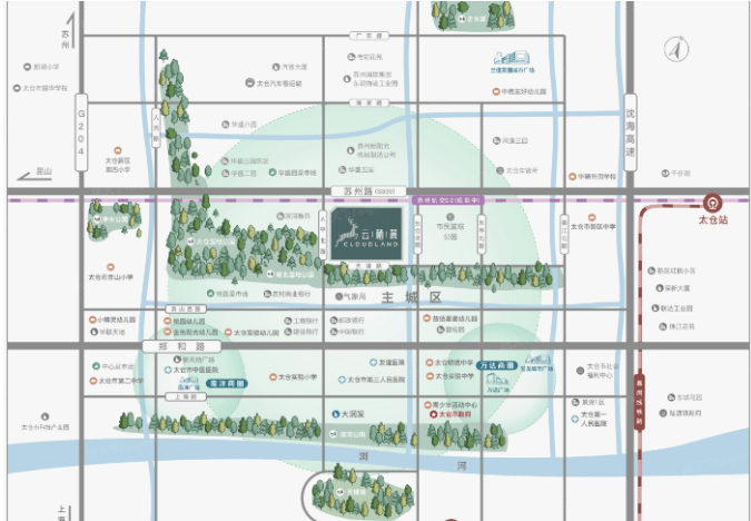 交通:天津路、太平北路主干道;多条公交覆盖;自驾快速上沪宜高速、沈海高速,约 40 分钟可达上海虹桥;临近在建苏锡常城际铁路娄东站;距沪通高铁太仓站约 4 公里