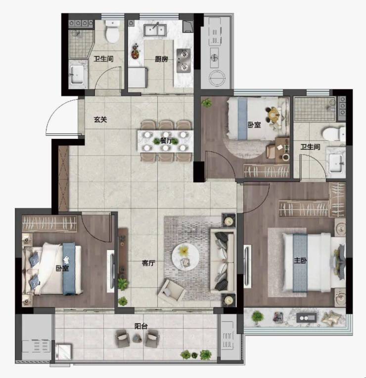 同时,三房全明通透,主次卧均朝南,自带飘窗,为生活增添灵动写意氛围。闲暇之余,在飘窗阅读瞰景,不失为调节忙碌生活的放松空间。