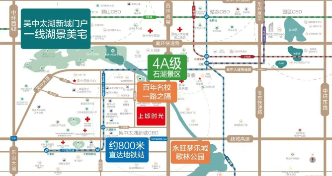 生态配套:周边有浩渺太湖、旺山景区、石湖风景区、天鹅湖公园等,生态环境优越。