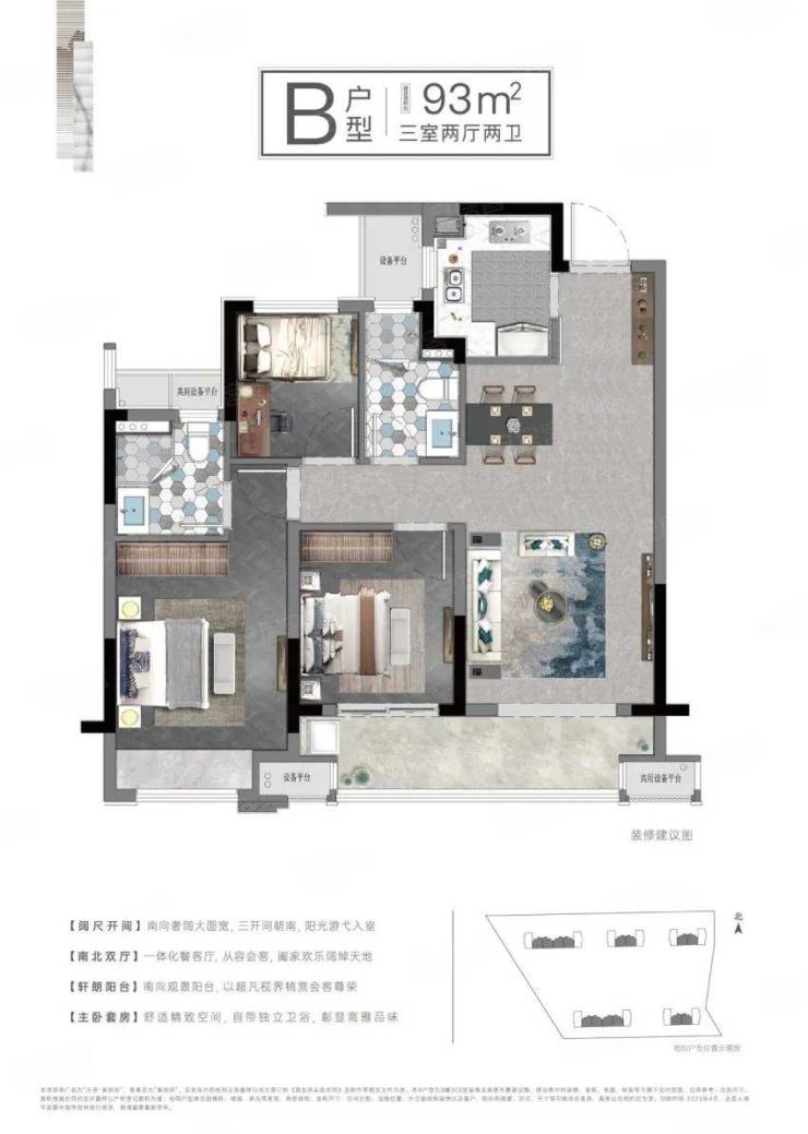面 积 段:95㎡、103㎡(3房2厅2卫,双阳台,开发商阳台全包)