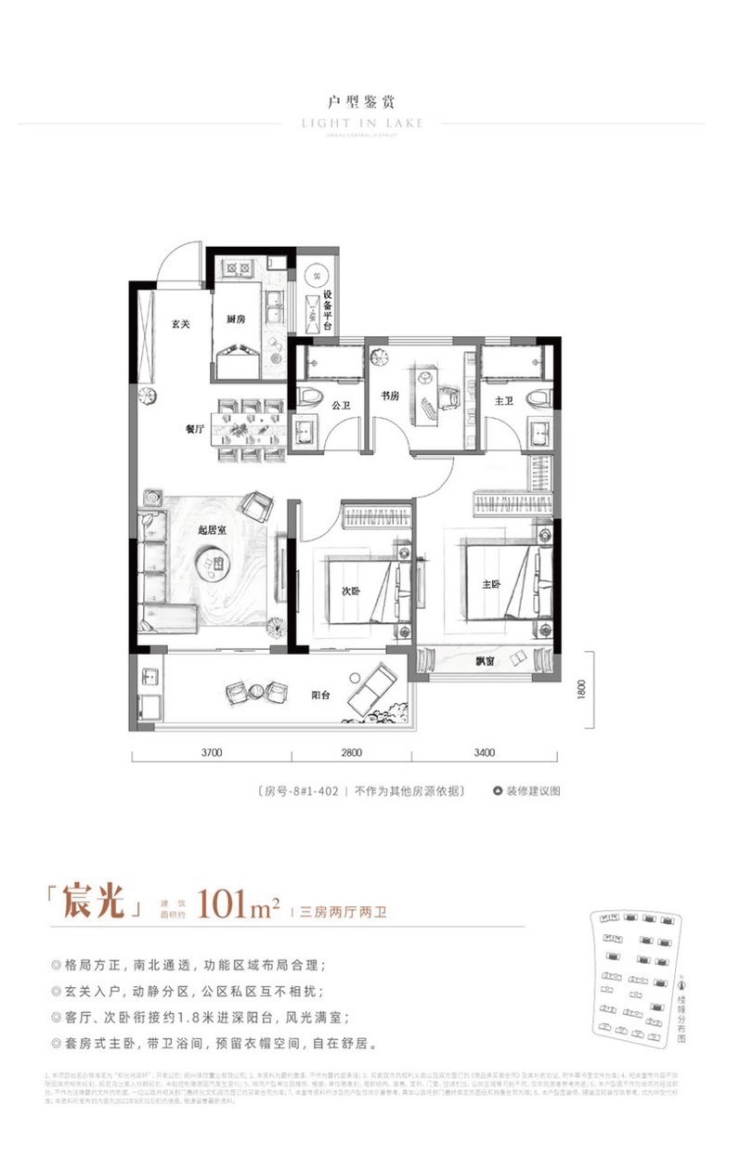 8#面积:中间套101㎡,边套128㎡