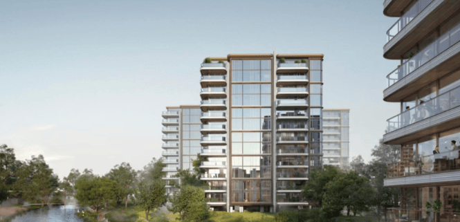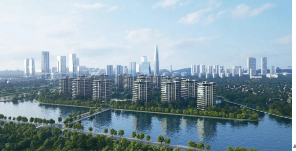 建筑与景观设计:由知名设计团队 gad 操刀,采用双曲面陶板、仿铜锈蚀合金板等高端建材,打造 “风帆曲线” 外立面,融入自然现代主义风格。以 “钱湖十景” 为灵感打造灵动森系景观,通过 T 型溪谷景观手法,将场地划分为多个组团,让每一栋楼都临水而居,实现景观 “平权化”。