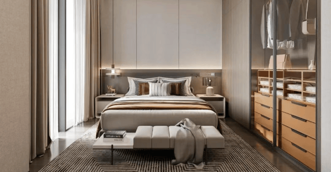 细节设计:在隔音降噪方面,墙面采用环保乳胶漆,门窗选用德国旭格系统窗,有效隔绝外部噪音;全屋采用三层中空 Low-E 玻璃、静音门锁与隐藏式收纳系统,墙面采用环保壁纸与木饰面结合,地面铺设天然大理石与实木复合地板,兼顾美观与实用性网易手机网。