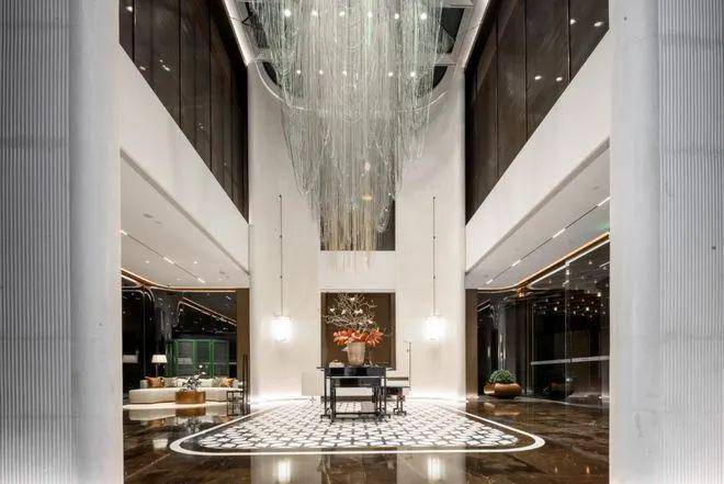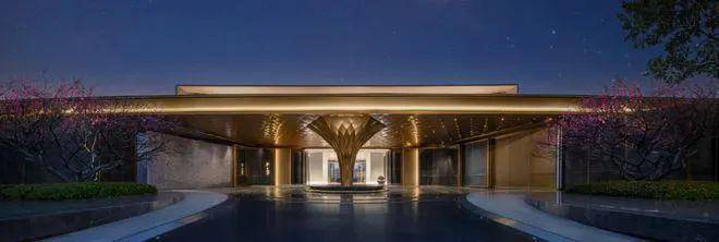 项目主入口仿照五星级酒店打造环岛式落客区,超48米星级酒店式迎宾门廊、约10米挑高归家大堂。