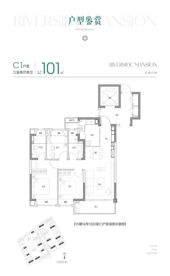 除了建面约144㎡,花语前湾主推建面约101㎡3房。