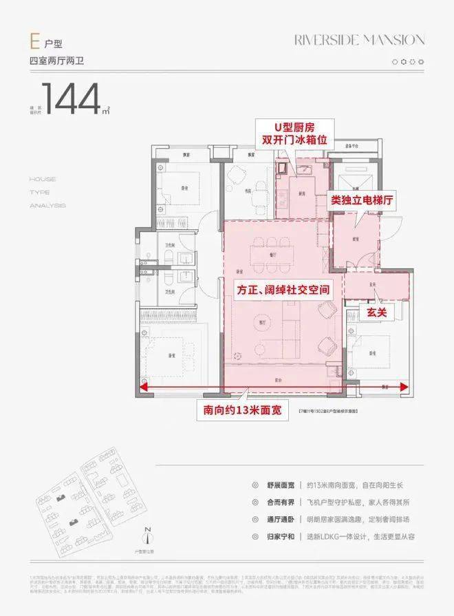 另一方面,南向面宽有足足约13米,你也很难在该面积段中见到如此方正、阔绰社交空间,平时待客或二胎共同玩耍,皆能很从容。