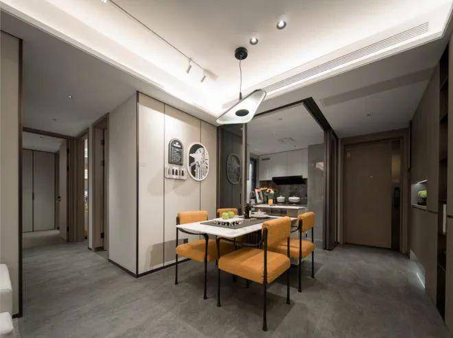 2、尺度感:一方面,两梯两户造就了“类独立电梯厅”,梯门一开,家的温暖迎面而来,家的玄关尺度,延伸至电梯厅。