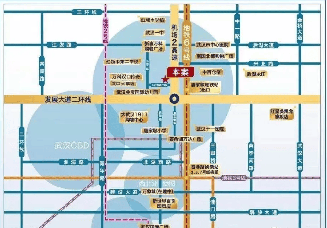 交通配套:紧邻地铁 6 号线唐家墩站,距离地铁 2 号线、4 号线也不远;周边还有 35 路、47 路等多条公交线路,驾车可快速连接武汉三环线及机场高速。