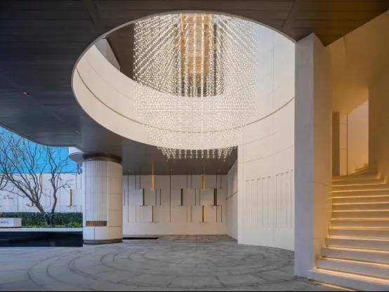 所以琨悦里最初空间构型的出发点,就是大水面与架空层之间的对话;是归家动线与美学体验的时空结合,是倦客归家时心灵的庇护,以及与之对立的,“唯有此心无一物”的空灵,而观者在两者间踱步。