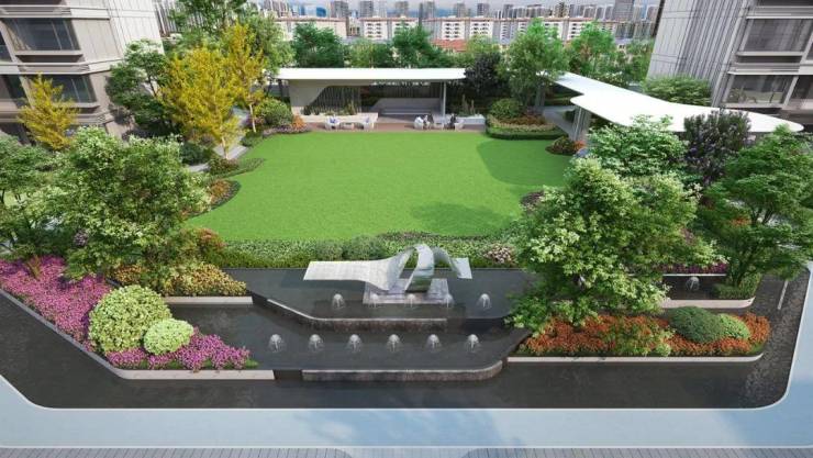 项目共规划5栋14-18F的高层,为了最大程度上保证每栋楼的充足采光和开阔视野,楼间距最高可达约45米,整个社区空间灵动通透。