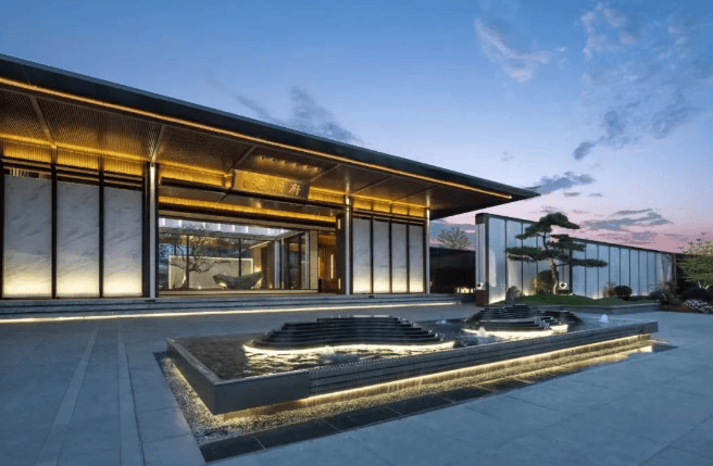 建筑风格独特:以宋式美学为蓝本,汲取吕府十三厅规制灵感,创新 “五进归家礼序”。主立面采用木纹铝板与灰白石材交叠,窗墙比达 0.35,结合垂直绿化系统,使能耗较传统建筑降低 40%。
