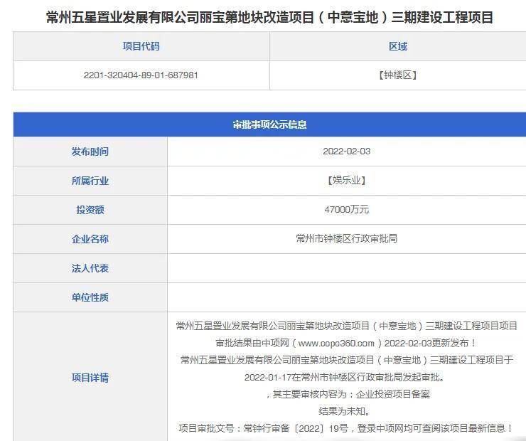 2021年12月8日起对常州中意宝第花园三期国有土地使用权进行了拍卖,最终成交价1.8亿元。