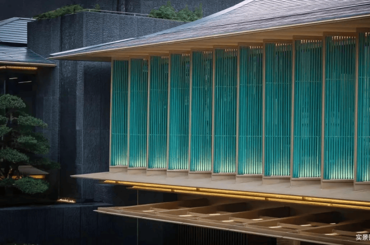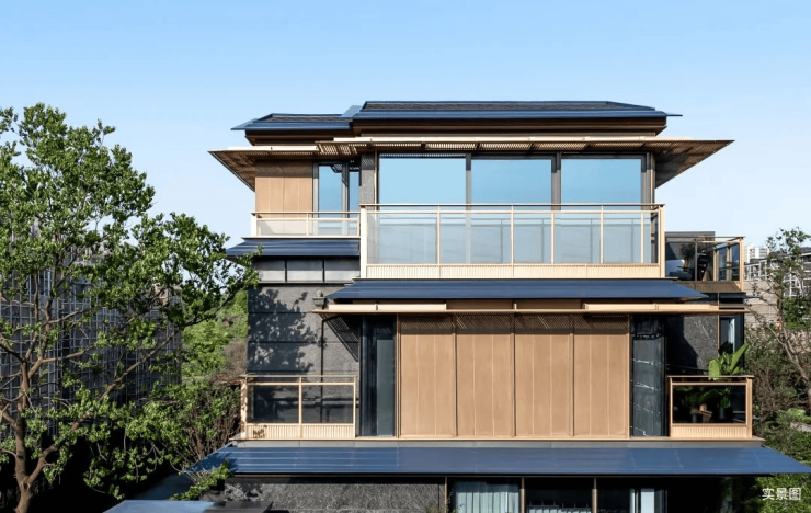 项目东区仅约0.6低密容积率,消弭建筑与自然的距离,强势填补板块矜贵的低密墅居生活。在立面打造上,提取宋代歇山顶样式,转译形成深远的挑檐,整体呈现一种清雅内敛的当代气质。大尺度巨幕玻璃窗镶嵌金色铝线条,极简化打造光影天幕,倒映自然之境。同时,项目还原创蓝金坡屋顶,掀起杭州合院立面的新序章。
