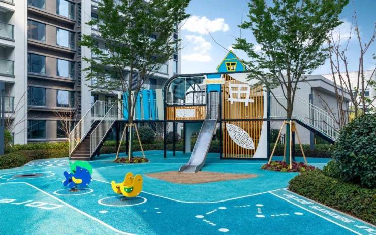 社区中央花园-星河剧场,由景观水桥进入一整片的公园绿地,休憩廊架、阶梯舞台、中央草坪,随时等候与邻里温情社交。在星际探索的童心缘空间,根据0-12岁不同阶段分龄设计互动功能,我们想把每一段开心的时光赋予每一个孩子。