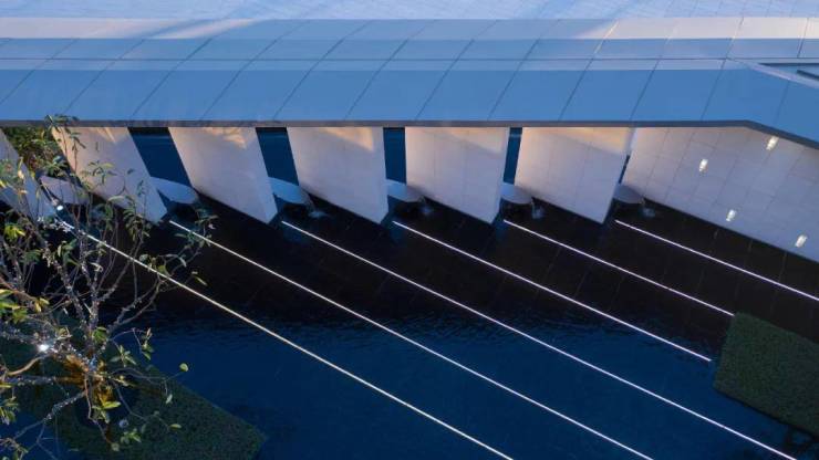 门廊顶部围合空间,营造步入内部空间前的完整仪式感,暗示空间的转换,从外部环境向建筑过渡。