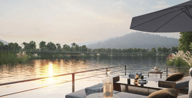 宋风设计:以宋式美学为基础,引龟山书院及寄畅园理念精髓,会所以镜像玻璃幕墙 + 宋式双檐营式打造,立面设计复刻宋冠翅帽檐、层级飞檐,沿袭宋徽宗瘦金书法风骨,展现无锡顶奢艺术。