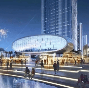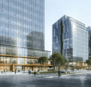项目规模:一个约 50 万方的城市综合体,总建面约为 3.83 万㎡的商务办公部分,由三幢具有 40 年产权的办公大平层组成,还有约 14 万方的新外滩滨水商业区。
