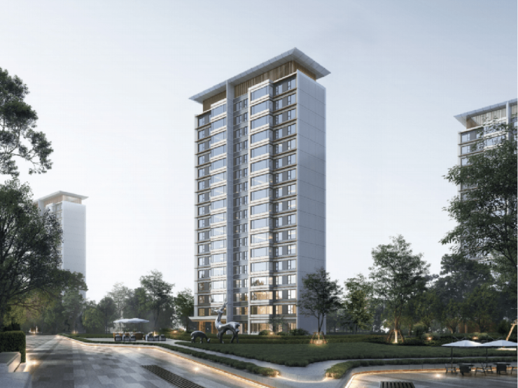 目整体是现代简约风格。外立面采用铝板+大面积玻璃面板组成,质感高级。
