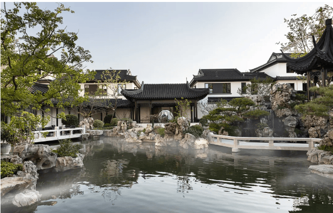 合院产品:建面约155-470㎡,采用新唐风建筑风格,由香山帮非遗大师张喜平领衔设计,融合盛唐建筑元素与现代简约美学,如灰瓦白墙、月洞门、下沉式庭院等,营造出“有天有地有院子”的居住体验。