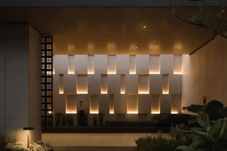 阳光、阴影、景物与建筑在空间中形成自然的互动,空间也有了丰富的层次感与动态美。夜晚,灯光与景观相互呼应,温暖、柔和,雕刻出一个既具有艺术感,又富有生活气息的空间。