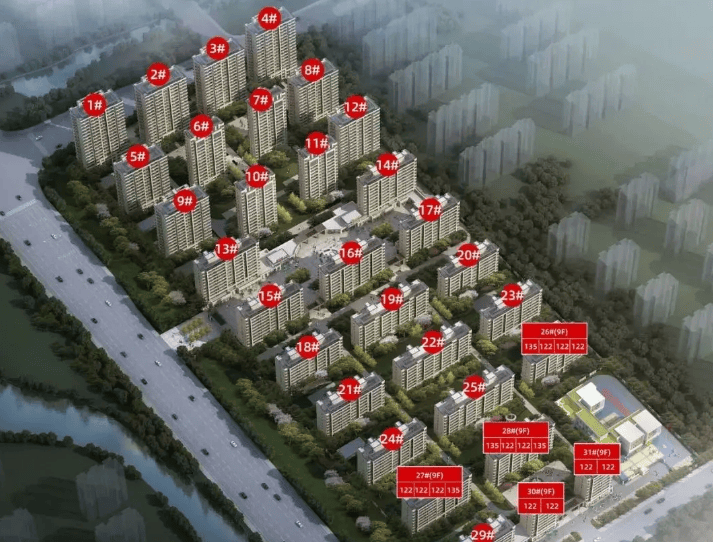 参数:占地约9.18 万㎡,建面约24 万㎡,31 幢,1338 户