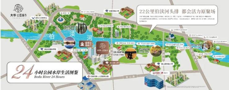 泰山路板块现已成为新吴核心居住区、都市之心,集产业、交通、配套、商业、景观等于一体,快速通达梁溪区、锡山区、滨湖区等,依托伯渎河发展带、具备天然的区位优势和绿地资源,在建的地铁5号线和预计十四五期间建成的快速中环线,是集住区氛围与生态环境为一体的宜居高地。项目紧邻地标型综合性滨水区域——伯渎河公园滨水景观带,拥有一线滨江景观。伯渎河人文生态廊道规划建设以“梦回伯渎,七里长廊”为主题总体景观结构的约65万方滨水生态氧吧,营造宜游休闲、人与自然和谐共生的生态环境。