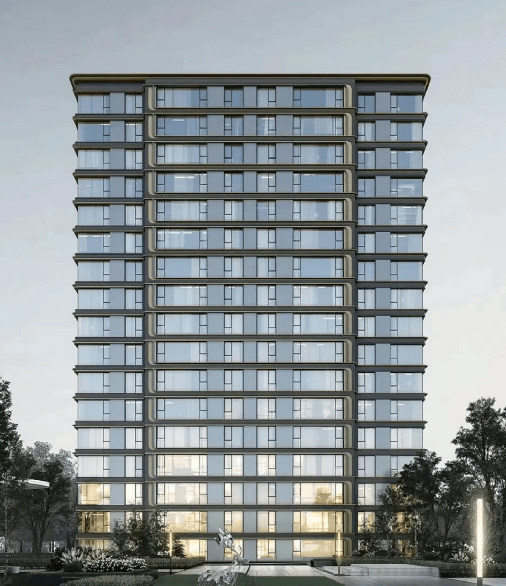 建筑设计:采用底部天然石材 + 天幕玻璃 + 铝板线条格栅 + 保温一体板的外立面设计,南立面窗墙比达到了约 46%,提升了建筑的品质和美观度。