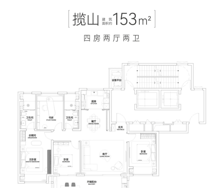 在狮山云起项目中,精心构筑了四种建筑面积分别为153平方米、183平方米、198平方米和223平方米的户型设计方案,均配置为宽敞的四房格局。