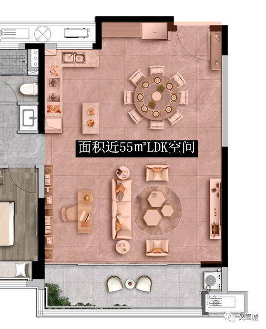 但这些都比不上这款户型的最大亮点:面积接近55㎡的LDK空间。