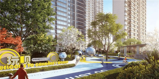 【超大中庭广场】是项目的最大亮点,总体量近万方。在这里,铂樾怡庭以森林生活为灵感,打造了“二环七景”的林居生活。