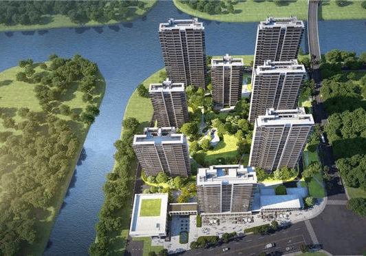 项目西、北两侧双面环水,拥有无可复制的自然景观。因地制宜的,铂樾怡庭在此设计了8栋住宅楼,采用典型的围合式布局。