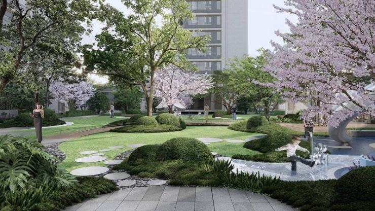 低密生态是项目的核心标签。在容积率普遍超2.5的主城,溪畔雲庐以2.0的低密规划,打造“一半建筑一半绿”的栖居环境。赤塘溪景观带穿园而过,与鸡鸣山公园、南山公园形成生态环抱,推窗即见山岚叠翠、溪水潺潺。社区内规划四进归家礼序,主题花园与8000㎡景观带串联,老人在林下休憩,孩子在草坪嬉戏,每一步都与自然相融。