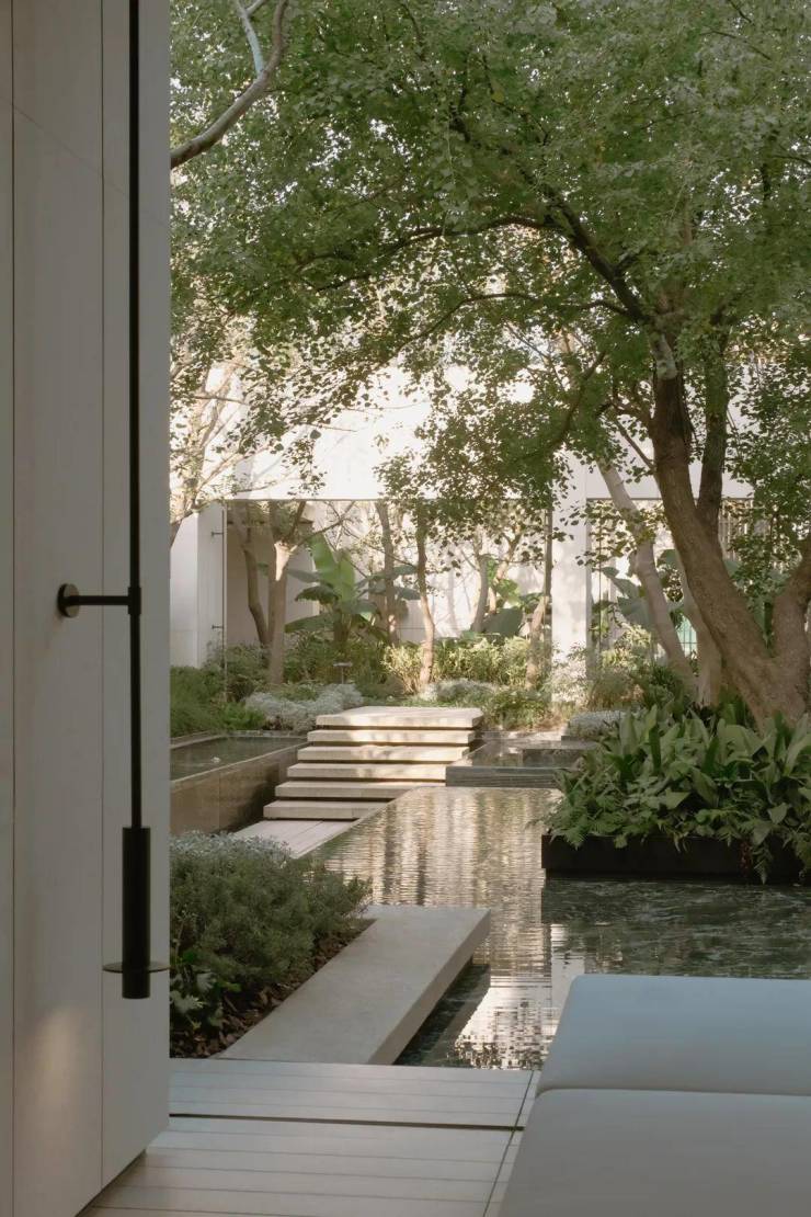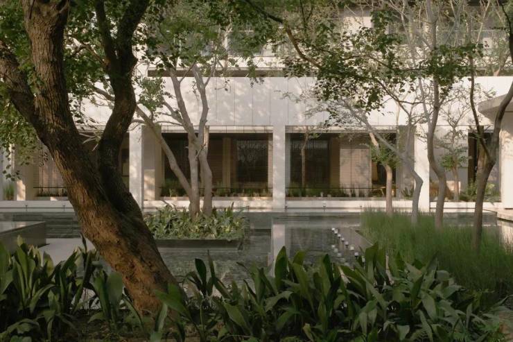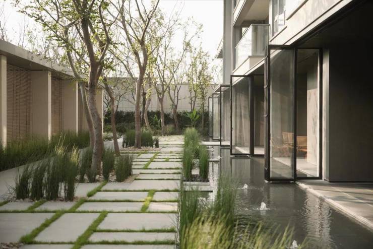 在立面、细节、材质以及植物的布局上进行匠心雕琢,还通过空间结构的巧妙设计,创造出一个层次丰富的景观美学空间。线条、材质、对景,让人在行进之中体会到静谧中高雅、永恒的美感。