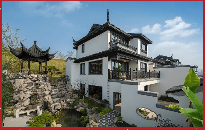 "蓝城春风长住项目是浙江省首批点状供地试点项目之一,项目总规划用地约1171亩,总建筑面积约12万方,倾力打造356套建筑面积约为89-240方的中式果园农庄产品,每户规划有菜地、果林、大农庄以及全明采光超大面积的创意空间。