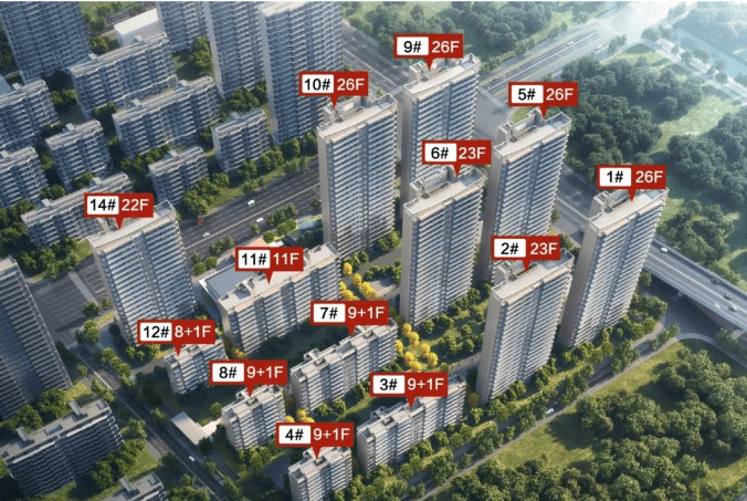 【面积】高层:105㎡/115㎡(3房2厅2卫)洋房:143㎡/顶复190㎡ (4房2厅2卫)169㎡ (4房2厅3卫)