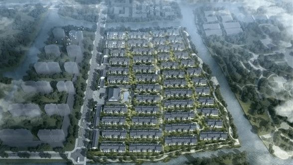 项目地块三面环水、近千米沿河滨水景观带,构成难能罕见的半岛地形。玉带环腰,难得之地。 项目传承蓝城春风系高端作品精髓,以江南传统水岸生活场景为筑造蓝本,打造由159户中式合院组成的低密高阶院墅住区。