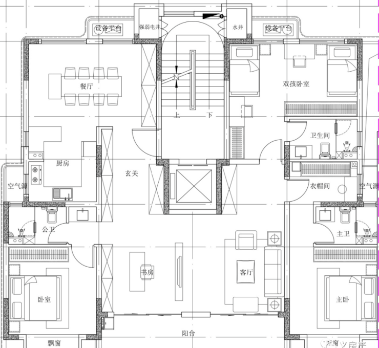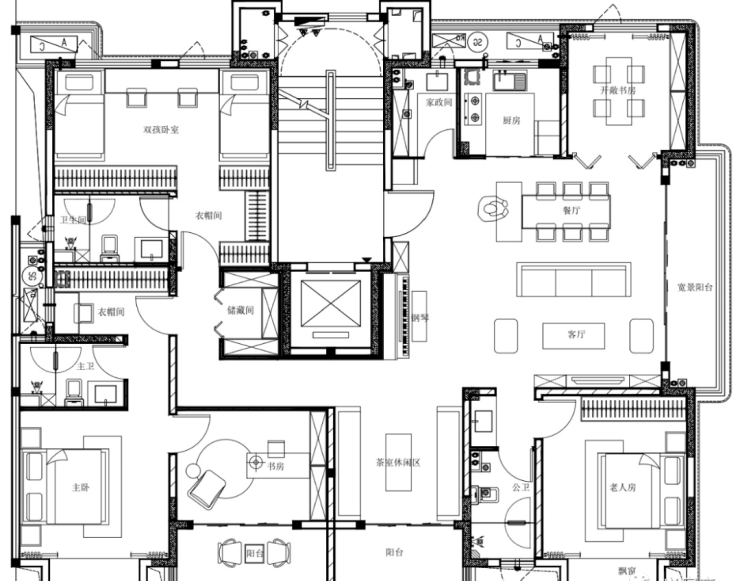 大老板 180平户型:四房两厅三卫,边套