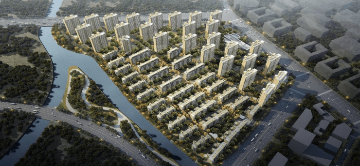 华润·山河九里约28万㎡国际滨水大城,整体容积率1.8,囊括小高层、洋房及叠墅全业态产品。
