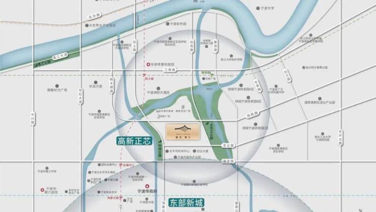地处高新区核心地段—院士路东侧,扬帆路与创苑路之间,大东江公园旁。毗邻【东部新城】及【老江东】,距离宁波市市政府约2公里,距离高新区服务中心约1公里。周边城市界面新颖,水系公园环绕,企业楼宇鳞次栉比,是理想的城市都会。