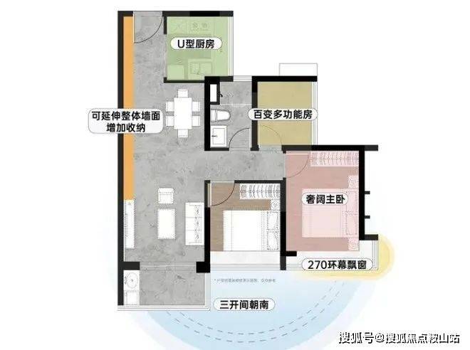 整体价值:7.6m³整墙收纳+南向9m采光面+5㎡全景厨房+270°景观主卧套间