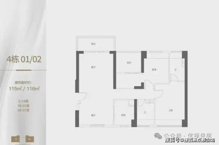 建面约115/116㎡3房