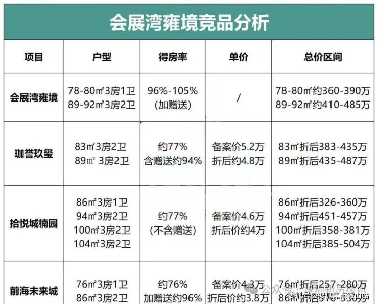 相比未来城,雍境二期78平三房产品比前海未来城76㎡小三房(折后257万起)面积大了2个平方,价格贵了约100万。