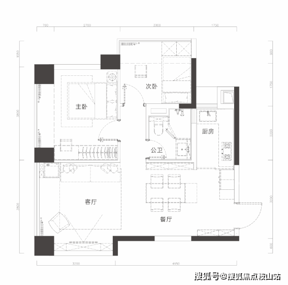 前沿S墙设计,预留冰箱位,空间零浪费;约3.8米面宽大主卧大飘窗。
