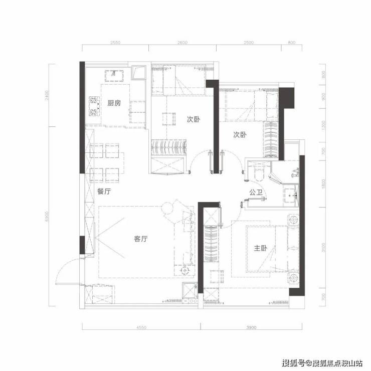 人性科学动静分区,休息待客互不打扰;约3.8m面宽主卧,主次卧带飘窗。