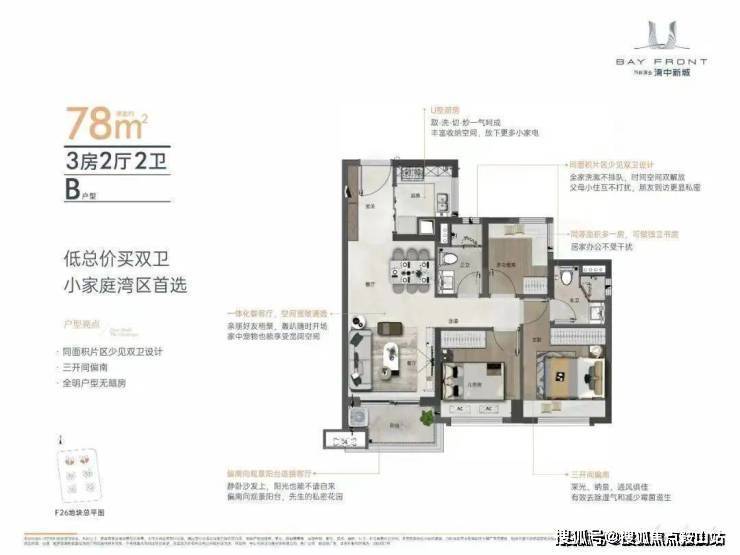 1、一期非超高层免去了避难层带来的分摊面积,对比一手的竞品使用率方面,官方公布的使用率约80.8%(不含赠送)