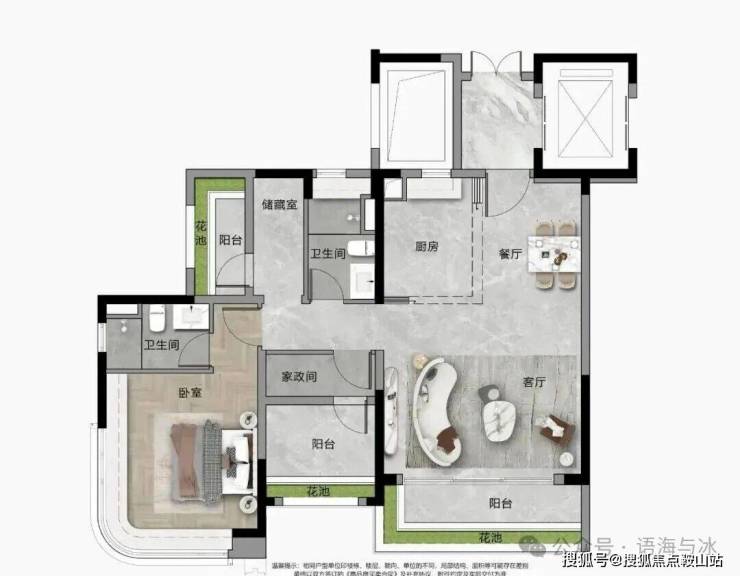 “宽幕视野” 南北通透双视野,主卧270°转角飘窗