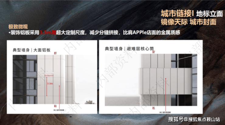 外立面采用大面积铝板设计,为减少分缝过多打破一致性,琶洲·樾 | 华樾采用的是足足3.3米尺度超大定制尺寸铝板。