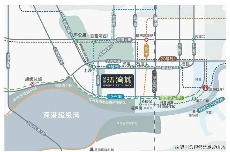 ·双地铁线:7号线双地铁口优势;22号线双地铁上沙交汇站(规划中),1站直达香蜜湖新金融中心与河套深港创新合作区。·超级口岸:皇岗口岸深度改造,深港唯一24小时陆路通关口岸,3城轨+2地铁,迅捷连通深港河套两地。·联港通沪:沪深高速磁悬浮规划,约2.5h通达沪深,链接“上广深港”南中国超级都会群。·城际轨道:全面覆盖广深科技创新走廊的穗莞深城际铁路,贯通大湾区重要科技核芯;深广中轴城际铁路,直连广深城市中心;香港北环支线,再添深港连通新轨道,便利畅达尖沙咀。
