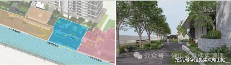 其次,在公区设计打造上,项目地势抬高约3米,打造观景平台,巧妙融入宝华涌一河两岸景观。