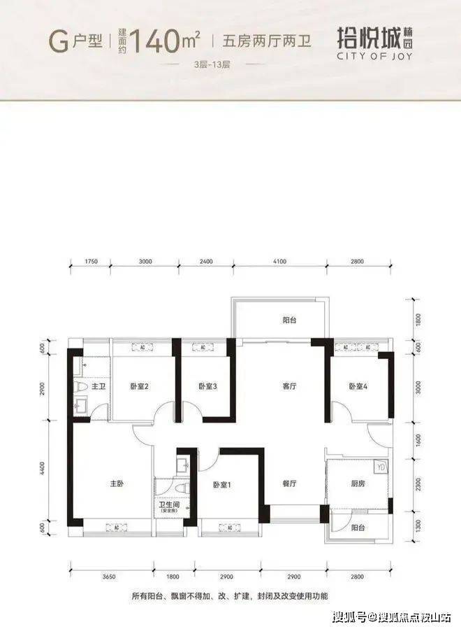 140㎡的5房2厅2卫:设计的竖厅南北通透格局,套内面积107.99㎡,得房率77.14%左右,客厅4.7米开间,目前仅B座05户型有